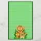 Write some crazy letters with this wild animal and jungle-themed paper. This ruled stationary features a cute drawing of a cartoon lion, tiger, and bear waiting to surprise you by jumping out of jungle leaves. The background is green. A perfect gift for people, especially kids, who love animals and cartoons.
