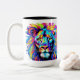 Start your day with a roar! This striking two-tone mug features a bold and colourful lion design, perfect for anyone who loves to make a statement. The lion’s majestic mane bursts with vibrant hues of blue, purple, orange, and green, creating a stunning rainbow effect. The rich black interior adds a sleek contrast to the bright, artistic exterior. Whether you're sipping your morning coffee or enjoying an afternoon tea, this 15 oz mug combines fierce style with functionality. A must-have for animal lovers and art enthusiasts alike! Dishwasher and microwave safe.