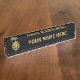 The nameplate looked exactly as pictured, I was very happy with this product! It also arrived promptly after placing my order! I would definitely recommend this product! The printing turned out exactly as I designed it, very pleased!