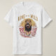 A majestic lion stands proudly with the words King of the Wild overlaid, representing the powerful and dominant nature of this big cat in its natural habitat.