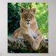 Lioness lying on rock poster
