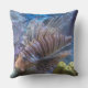 The lovely lionfish on this 20” Throw Pillow is swimming in a colourful saltwater aquarium. It is an original photograph by ZoeSPEAK, showing the pattern of thick and thin stripes and fancy fins on this unusual looking fish. It is a colourful photo with the tropical blue, yellow and pink of the aquarium and the salmon pink nose of the fish.