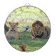 Lions, cat and hummingbird on the jungle Dart Board.