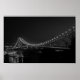 Captivating black and white photograph of the Lions Gate Bridge in Vancouver, Canada. The elegant suspension bridge spans over pristine waters, framed by a dramatic cityscape. A stunning piece of art capturing the essence of this iconic landmark