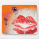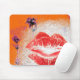 Lips on Orange Background Purple Flowers Mouse Pad