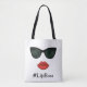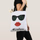 Bright red lips and sunglasses. Perfect ladies tote bag. Kiss your worries goodbye with this vacation travel tote bag.