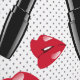 This design features lips and lipstick on a grey polka dotted pattern.