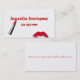 Fun ladies business or calling card made using the pearl card stock. Graphics of a red lip stick and red lip stick print. Text in bold red on the front is fully customisable to read anything you want. Even add more text fields if you chose. Don't for to personalise the back text also. Great ladies general calling card or business card for makeup artists too.