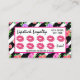 Glam it up! Vivid roses, edgy modern stripes, and a hot pink smooch kiss create a femme 'n flirty statement for your beauty business. Perfect marketing for independent lipstick distributors, makeup artists, stylists and beyond.