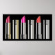 A fun pattern of colorful lipsticks in chrome tubes. Very girly and modern. Looks like a lipstick city skyline.