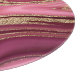 Dive into abstract fluid art with golden splatters on a pink marble canvas.