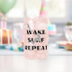 This cup features a dynamic graphic design of a person wake surfing, with a stylised wave below and a bird flying overhead. The words “WAKE SURF REPEAT” are prominently displayed above and below the surfer in bold, capital letters. This design captures the thrill and excitement of wake surfing, making it a perfect choice for water sports enthusiasts.