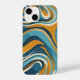 Liquid Swirl Ochre Blue Trippy Pattern iPhone Case