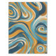 Liquid Swirl Ochre Blue Trippy Pattern Tablecloth