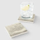 The coasters are gorgeous, a quality feel and heavy weight. They look like a precious archeological find. A rustic stone juxtaposed with a modern floral black and white print. I like the way the print goes slightly imperfect on the cut stone edges giving them a kind-of natural beauty.