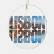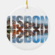 Lisbon text composed old town view with reflection ceramic ornament