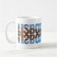 Lisbon text composed of panoramic old town view with text reflection in water in Lisbon, Portugal.