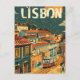 Immerse yourself in the bygone charm of Lisbon with our vintage travel ad art. This captivating piece captures the city's timeless elegance along the Tagus River, where historic landmarks and vintage vibes converge. Picture yourself strolling through cobbled streets, surrounded by colourful facades and the warm glow of antique street lamps. Embark on a journey to Lisbon's time capsule, where every corner whispers tales of history, cultural richness, and the enduring beauty of Portugal's capital.