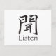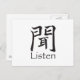 Listen Kanji Character Postcard