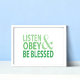 This adorable "Listen Oben and Be Blessed" poster is perfect for your child's room. It serves as a wonderful daily reminder! Order yours today!