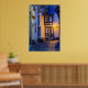 Lit Street Lamp on Cobbled Street Poster