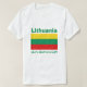An editable title and slogan accompanies the yellow, green and red horizontal bands of the Lithuanian flag on the front of this t-shirt. The back displays a detailed map of Lithuania.
