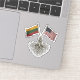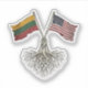 This kiss-cut vinyl sticker celebrates the Lithuanian-American identity by visually merging the flags of Lithuania (yellow, green, and red horizontal tricolor) and the United States (stars and stripes). The design typically symbolizes a strong connection to both the Baltic homeland and the adopted country, representing deep cultural roots and national pride.