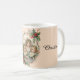 Three adorable little angels, with sheet music behind them, and a holly wreath around them, make a darling and vintage-looking design on this mug for Christmas.