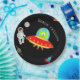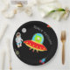 This cute outer space theme party plate features a little astronaut explorer taking a walk through space, along with little green men in UFO's, rocket ships, Jupiter and the moon all around him. In the background is the vast, black emptiness of space....(of course!). This cute plate has been designed especially to match an existing birthday party set with this design on, which also includes matching party invite, stickers, party hats and other party favours which you can see here: https://www.zazzle.com/collections/little_astronaut_in_outer_space_birthday-119253393331821240  (Oh, and the text 'Space rations' can be customised to suit, i.e. you could substitute a name in there or a date if you wish, or even removed altogether if needed). Thanks for looking! 👽
