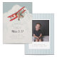 Get ready to take flight with this vintage style birthday party invitation! Against a light blue background, an adorable little red aeroplane soars above the clouds. With its charming hand-drawn style, this little aeroplane is sure to capture the hearts of your guests and set the tone for a fun and adventurous celebration. The colour scheme is soft and whimsical, with shades of blue, red, and cream adding to the overall charm of the design. With its playful illustration and vintage-inspired design, this invitation is sure to delight your guests and get them ready for takeoff.