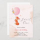 Little baby fox flying with balloon invitation