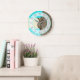 Little baby bear cub climbing a tree in teal and tan children's or baby nursery clock.