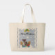 A precious Christmas Jumbo Tote bag with a cute little brown bear in pyjamas sitting on a colourful quilt with presents. A little gingerbread boy and girl sit on his blanket as they all float on a cloud through the snowy sky. A little bow and a "Merry Christmas" make this an adorable tote bag for everyone.