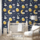 Little Bear Cute Moon Stars Planets Kids Pattern Wallpaper