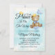 little bear prince blue gold boy baby shower invitation