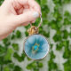 Little Beauty Modern Blue Gold Fractal Art Flower Key Ring