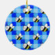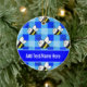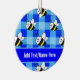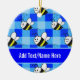 Little Bee Blue Plaid Pattern Custom Name Ceramic Ornament