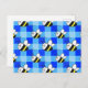 Little Bee Blue Plaid Pattern Custom Postcard