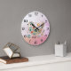 Little Bird Floral Embroidery Pink Wall Clock