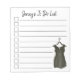 List-style TO DO checklist note pad design features an original watercolor illustration of a classic little black dress on a hanger. Just personalise with your information.