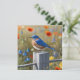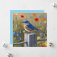 A delicate little Blue bird is perched gracefully atop a weathered old fence post in a field of beautiful wild flowers. This little bird is a symbol of freedom, tranquility, and the simple joys of the countryside, and this scene captures the timeless harmony between wildlife and nature.
