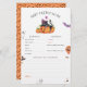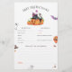 A baby predictions game for a halloween-themed baby shower! A black and orange, gender-neutral design great for little boys or girls expected around October. This design features a watercolor illustration of a cute black cat wearing a purple hat and holding a magic wand, two smiley orange pumpkins, two spooky ghosts, a wizard's hat, a purple bat, and a funny orange balloon. A baby predictions & advice game card to match our "A Little Boo Is Almost Due Halloween Baby Shower" design. View the collection linked on this page for matching items or visit our store for more halloween baby shower designs.