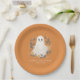 Little Boo Boho Ghost Halloween Baby Shower Paper Plates features an adorably spooky ghost, surrounded by bohemian botanicals.