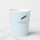 Cute pastel blue Halloween "a little boo is almost due" ghost design paper cups for a little boo theme baby shower or first birthday.