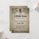 Halloween Baby Shower Theme "Our Little Boo is Almost Due" featuring a vintage gothic design with ghosts, spider webs, delicate floral accents and a charming spooky font. The subtle beige background adds a rustic touch while the playful LITTLE BOO headline captures the Halloween spirit. This products can be easily edited with your personal details.