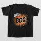 Stylish Little Boo T-shirt, featuring a sparkly orange comic background.