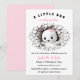 A little boo is almost due, funny Halloween Girl Baby Shower Invitation in black & white and pink, with a cute peeking baby ghost girl. Baby shower invitation editable template, easily personalise all the text. - Kate Eden Art