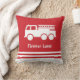 Give your little firefighter his very own custom throw pillow! Throw pillow adds a cute modern touch to the bedroom or nursery of your little boy and features a fun fire truck and white stripes on a red background. Custom text says Fireman followed by your child's first name.