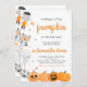Celebrate your upcoming bundle of joy with our Little Boy Pumpkin Baby Shower Halloween Invitation! Our Little Boy Pumpkin Invitation features a delightful design perfect for a boy's baby shower with a cute owl and charming orange pumpkin. BBS424