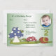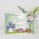 Customised cute little bugs birthday party invitations featuring adorable bugs and dotted mushrooms with a picture of your child for all your birthday party announcing needs.